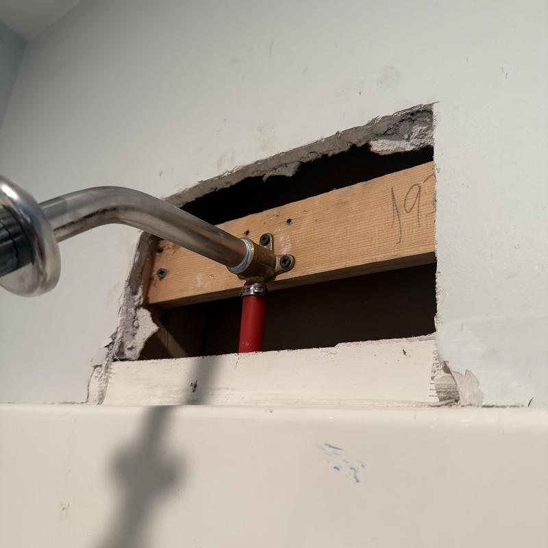 Wicked Plumbing repaired a damaged showerhead in Fall River, Massachusetts. The team opened the drywall, installed a new 90-degree fitting, and added proper support to secure the fixture. This service restored function and prevented future structural damage behind the wall.