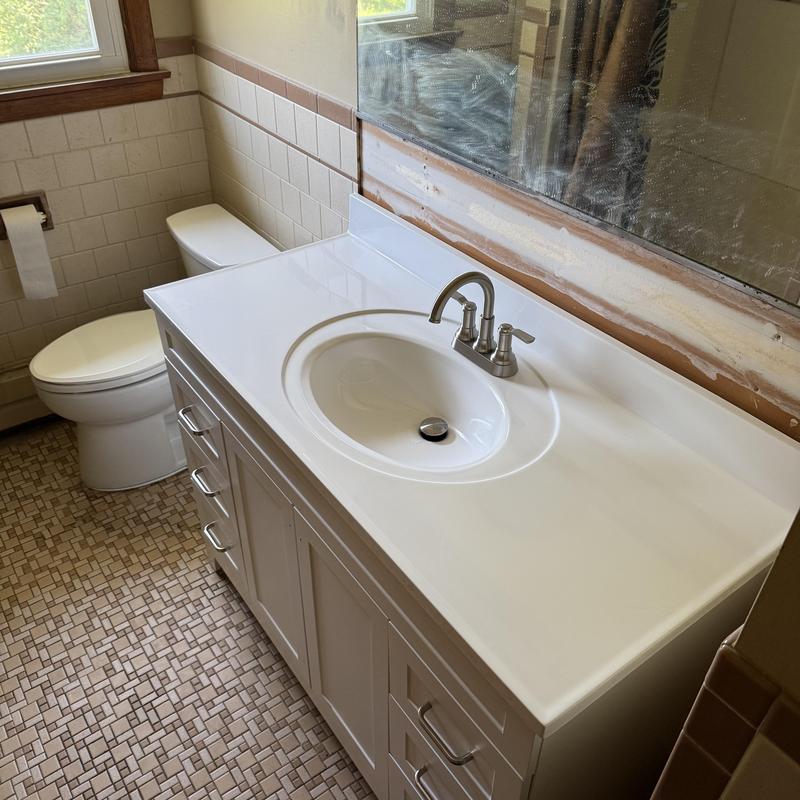 Wicked Plumbing moved a laundry room from the basement to the first floor in Fall River, Massachusetts. The team also replaced a vanity, toilet, kitchen faucet, and outdoor hose connections at the front and back of the home. This service improved plumbing access and updated key fixtures across the property.