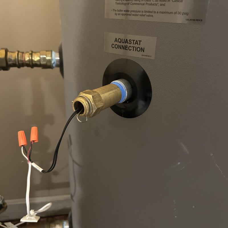 Wicked Plumbing replaced a faulty probe well on an indirect water heater in Fall River, Massachusetts. The technician installed a new Braswell probe well and a Lochinvar temperature probe to restore hot water service.