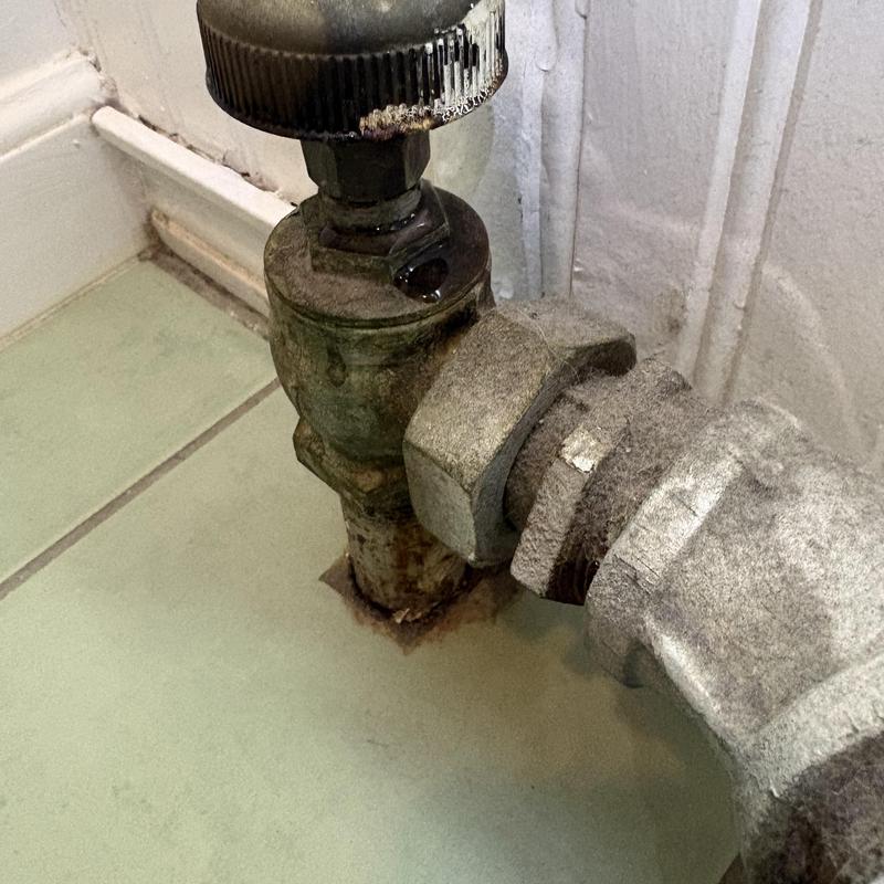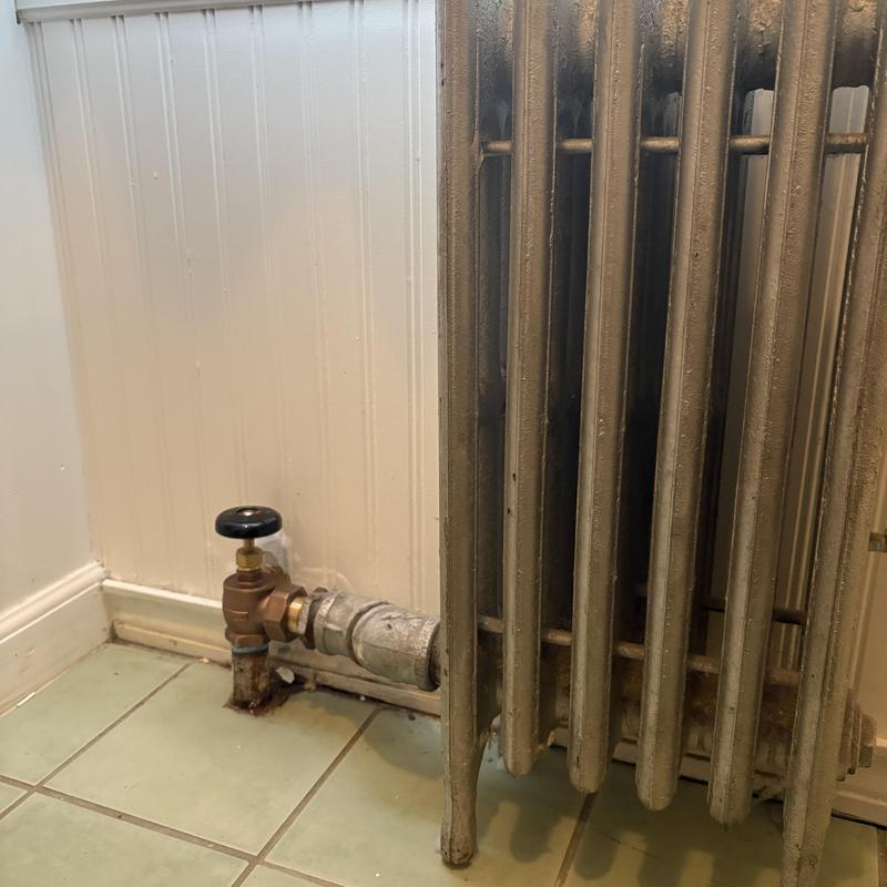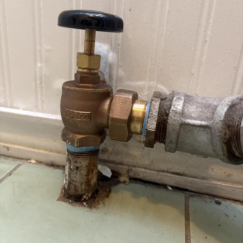 Wicked Plumbing repaired a leaking steam radiator valve in a bathroom in Cranston, Rhode Island. The team used thermal imaging to locate the issue, replaced the faulty valve, adjusted the radiator pitch, flushed the system, cleaned the sight glass, and confirmed proper operation of the heating system.