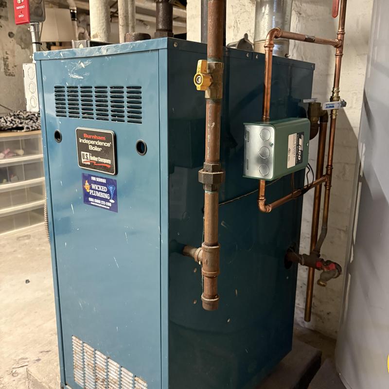 Wicked Plumbing replaced a malfunctioning boiler for a homeowner in Somerset, Massachusetts. The plumber removed the old unit and installed a new boiler. This service restored the home's heating and hot water systems.
