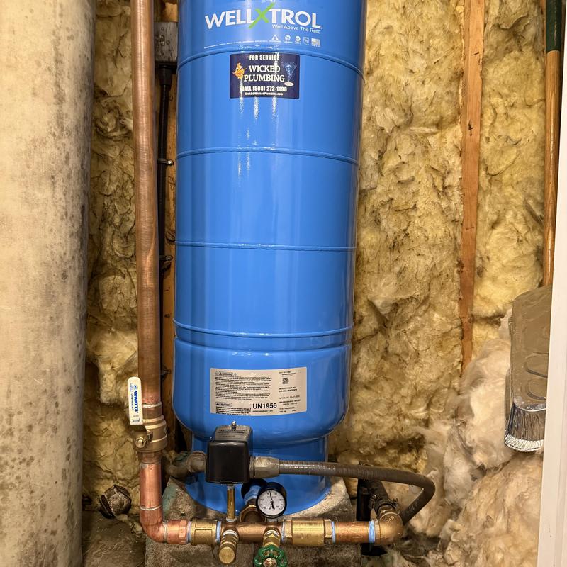 Wicked Plumbing replaced a corroded and leaking well tank and installed a new pump in Fall River, Massachusetts. The team upgraded the pipe size and tested the system to confirm proper function. This service improved water delivery by restoring system reliability and adjusting flow capacity.